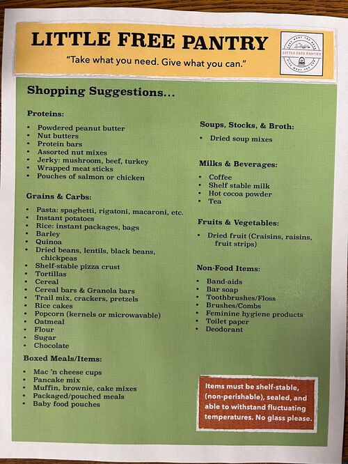 - Take what you need. If you find an item inside that you need, take it and know that we care. Please remember the LFP belongs to all of us and take only those items needed, trusting the pantry will be here for you again.