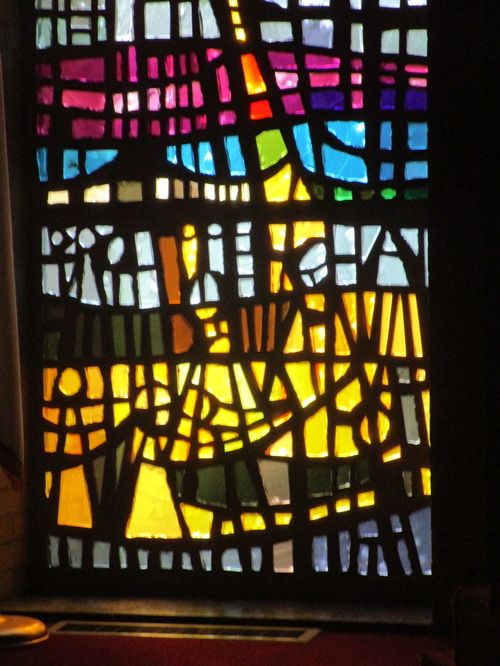 In other words, the window is the faith life of the Christian Church on earth and one over-arching act of praise. I feel it is a happy, joyful, celebrated kind of thing.