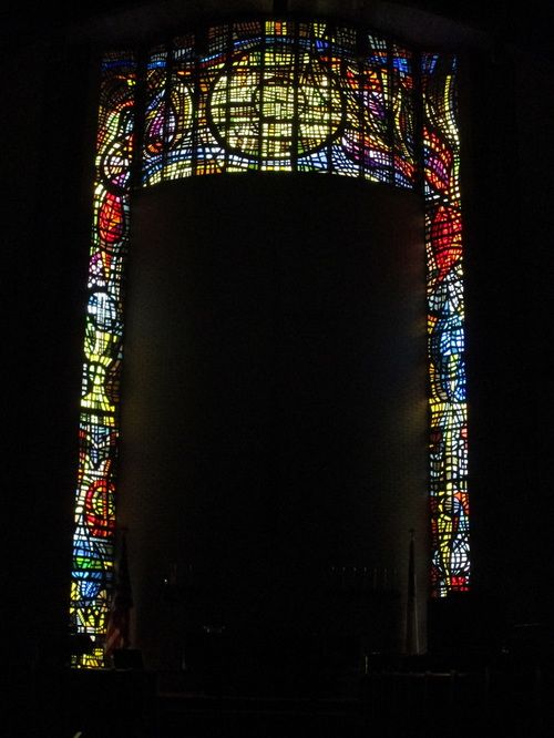 The windows in the Chancel area of the church and the six windows in the nave of the Church were designed by Professor Richard Caemmerer, artist at Valparaiso University, Valparaiso, Indiana. The windows were fabricated under the direction of Professor Caemmerer by the Conway Universal Studios of Glass of Winona, Minnesota. The artist' Own description of the windows follows: