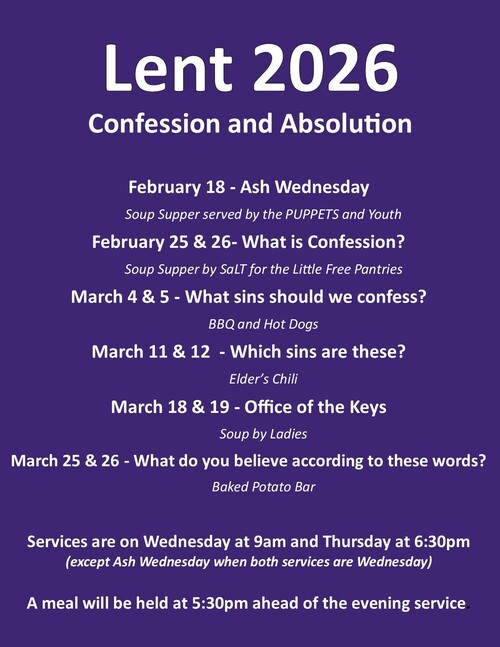 You are welcome to join us for Divine Service Thursday evenings at 6:30pm and Sunday mornings at 9am.